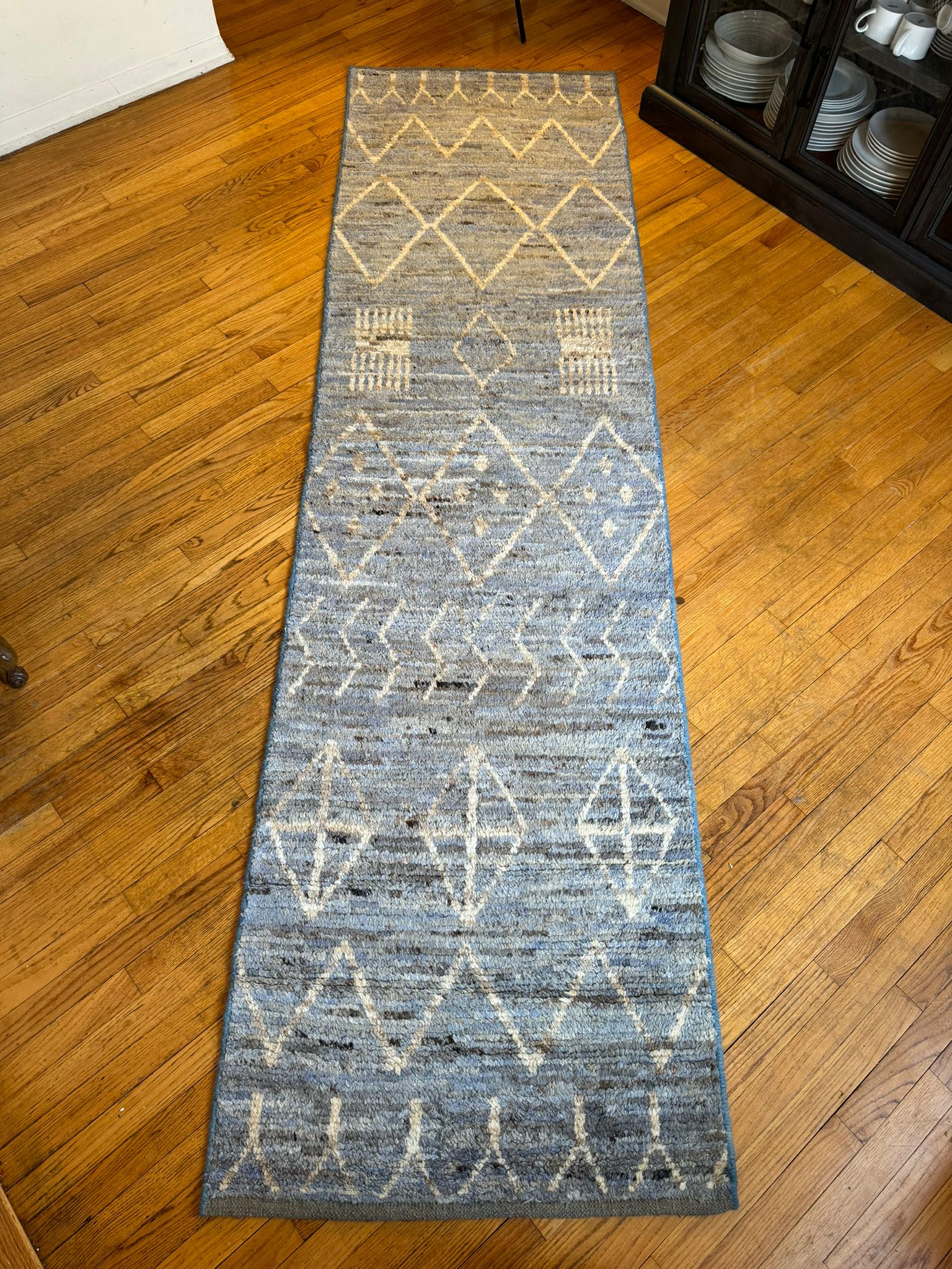 Introducing the 'Modern Tribal Jol Khers Runner Rug', a harmonious blend of tradition and contemporary design. Measuring 9.4 by 2.7 feet, this rug is a striking addition to our Rugnify collection. The design takes inspiration from the time-honored Jol Khers style, known for its tribal patterns and robust textures. Expert artisans have skillfully adapted these elements to suit a modern interior, creating a piece that is both a nod to the past and a statement for the future. Each strand is woven with care, ensuring that the cultural legacy embedded in this rug is carried forth into its new home