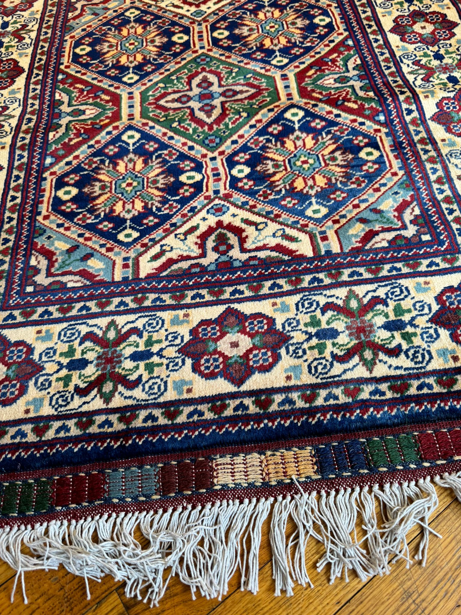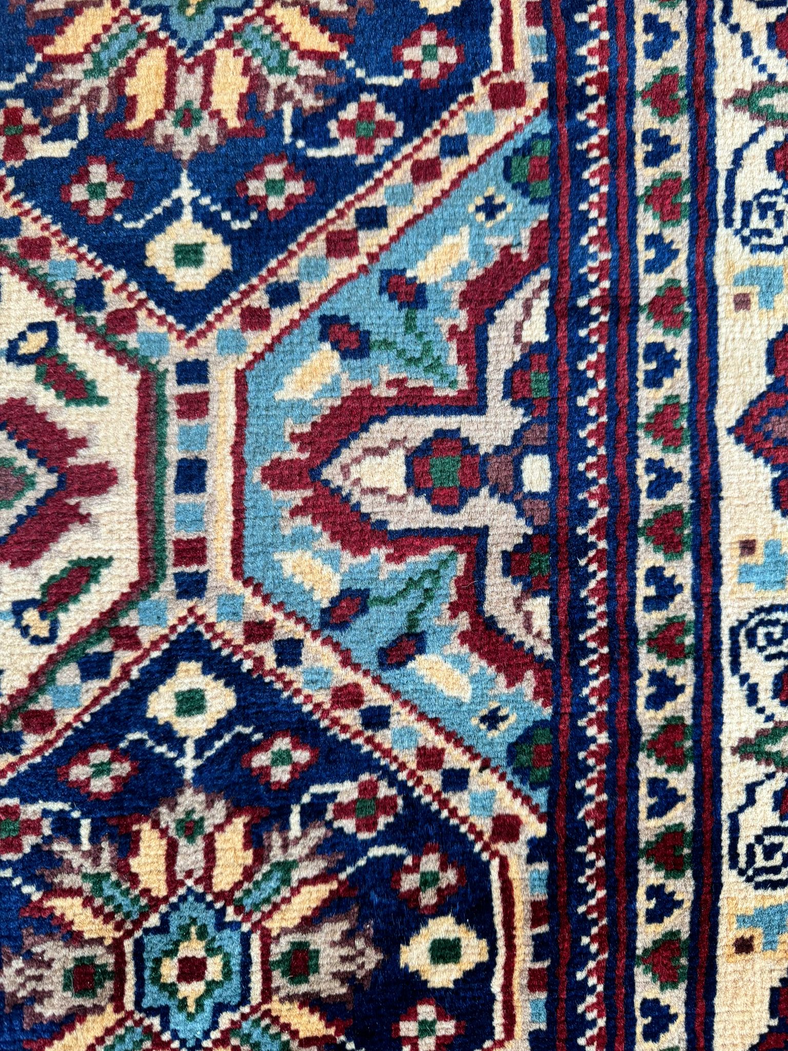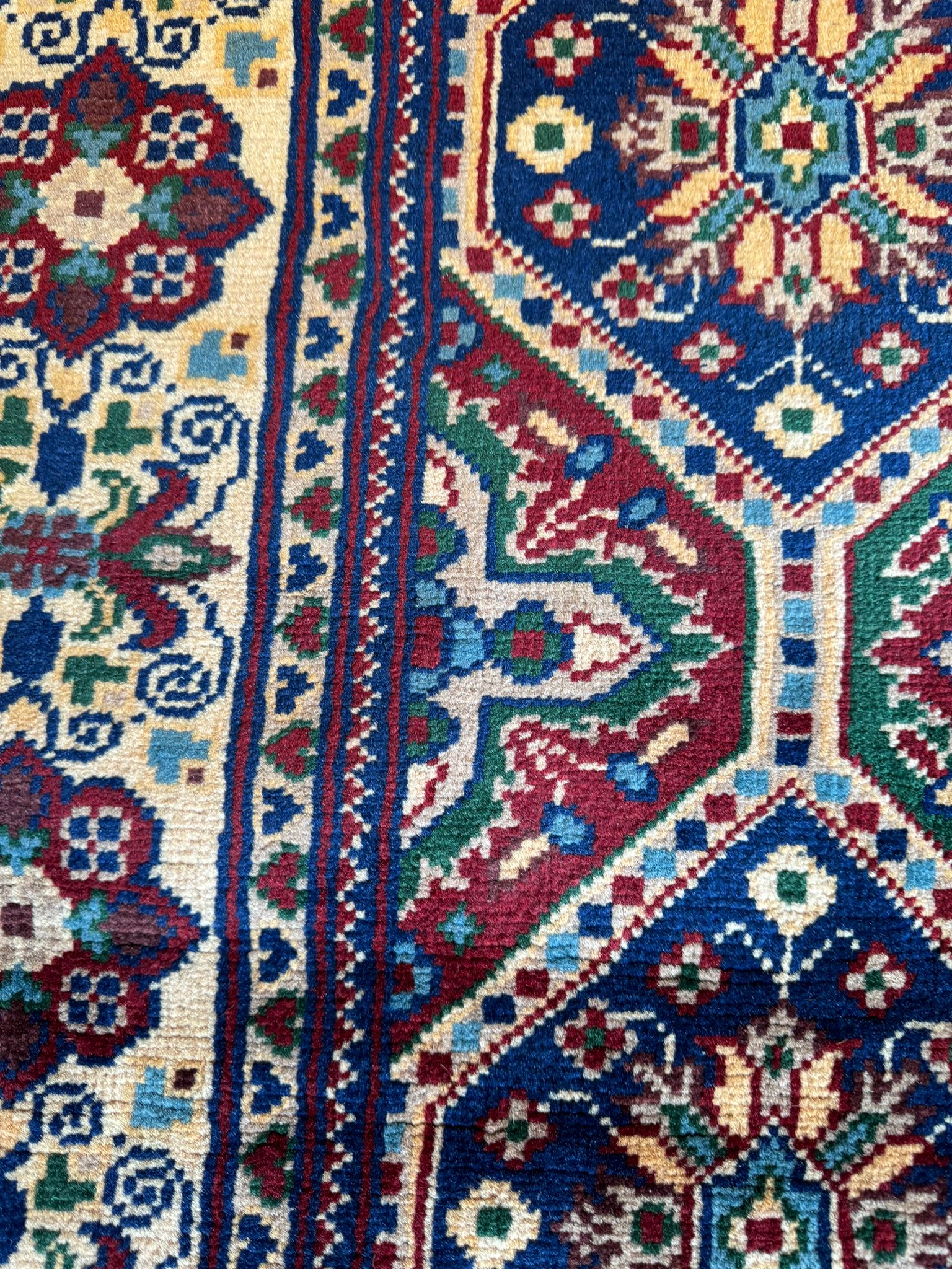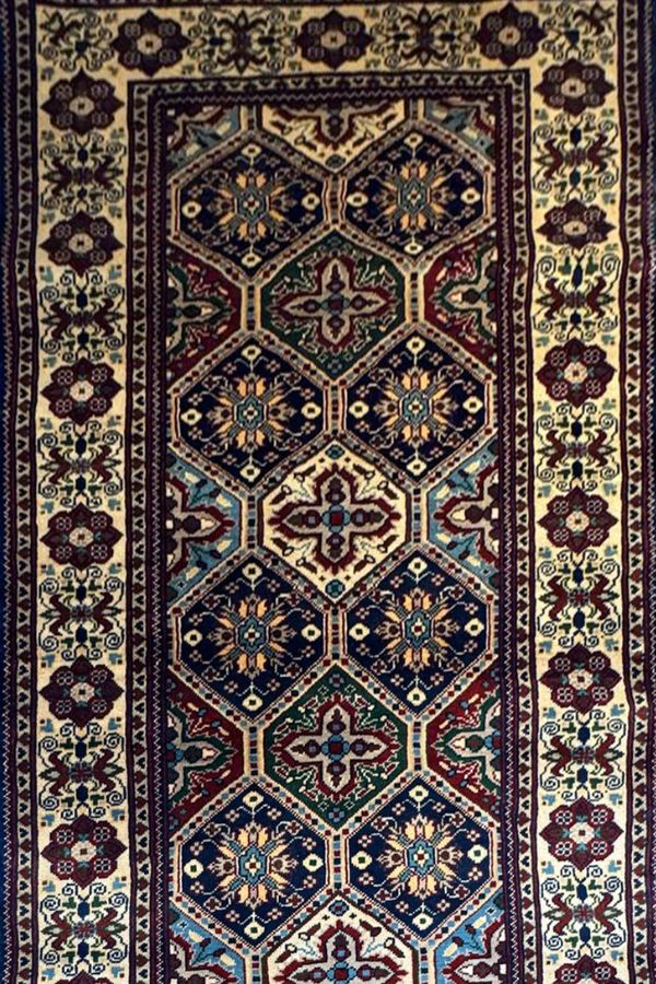 Immerse yourself in the elegance of our 12.9x2.8 ft Kashi Runner Rug, meticulously woven in the heart of Andkhoy of Afghanistan. This runner is a masterpiece of design and color, bringing the warmth and sophistication of traditional Kashi patterns into your home. Each stitch is a testament to the weavers' skill, creating a tapestry that is not just a floor covering but a focal point of cultural expression and artistic beauty. Adorn your hallway or living space with this rug and let it tell its ancient story in a modern setting.