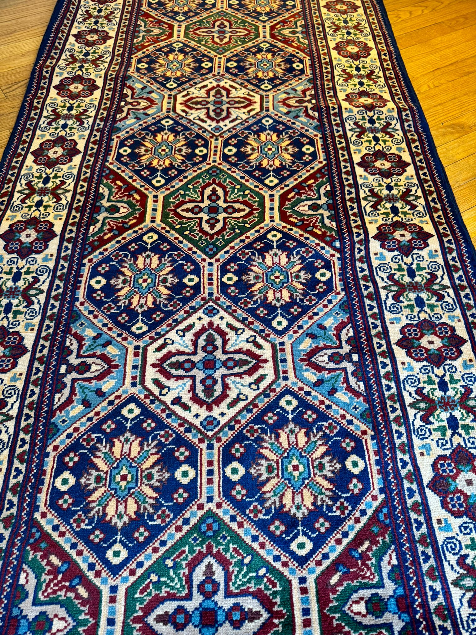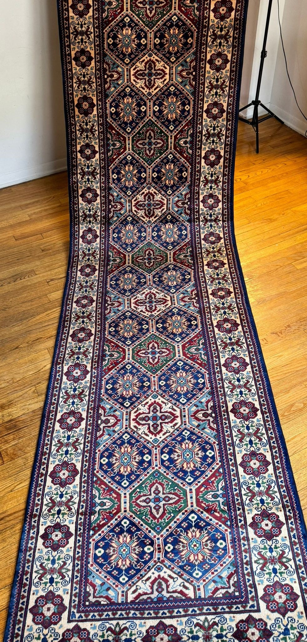 Traditional Kashi Runner Rug - 12.9x2.8 ft
